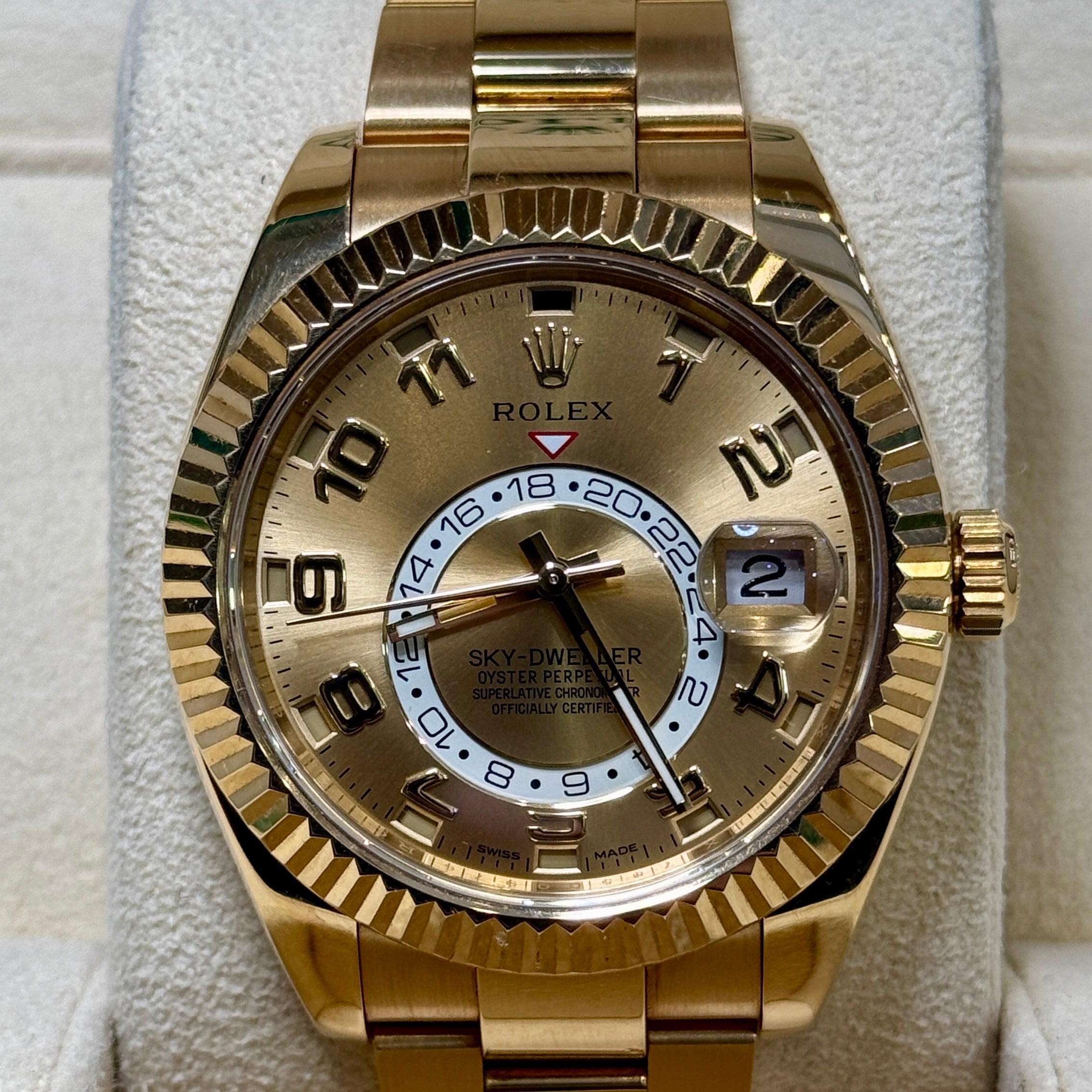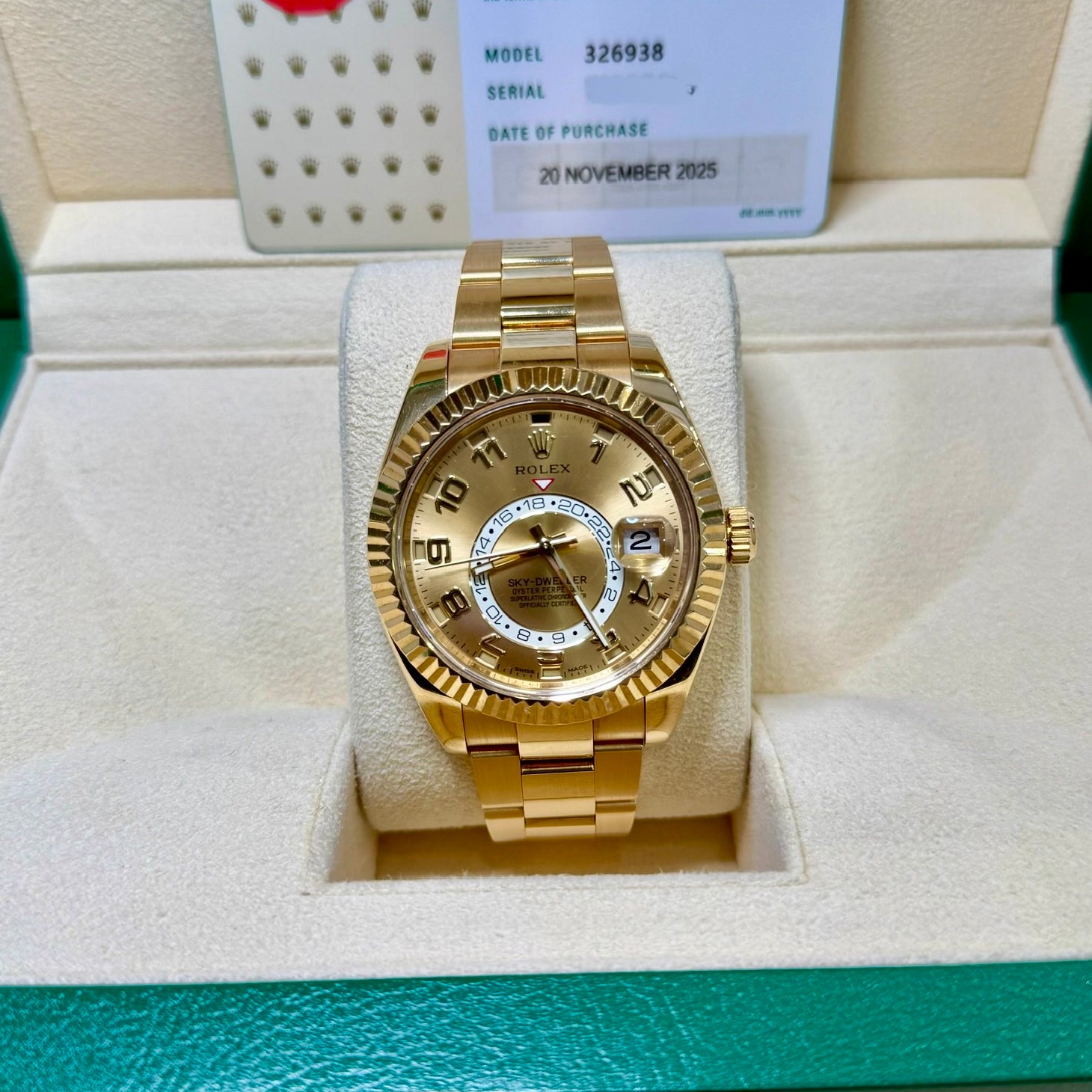 Rolex 326938 SkyDweller Champagne Sunray Arabic 2025 - Service Papers