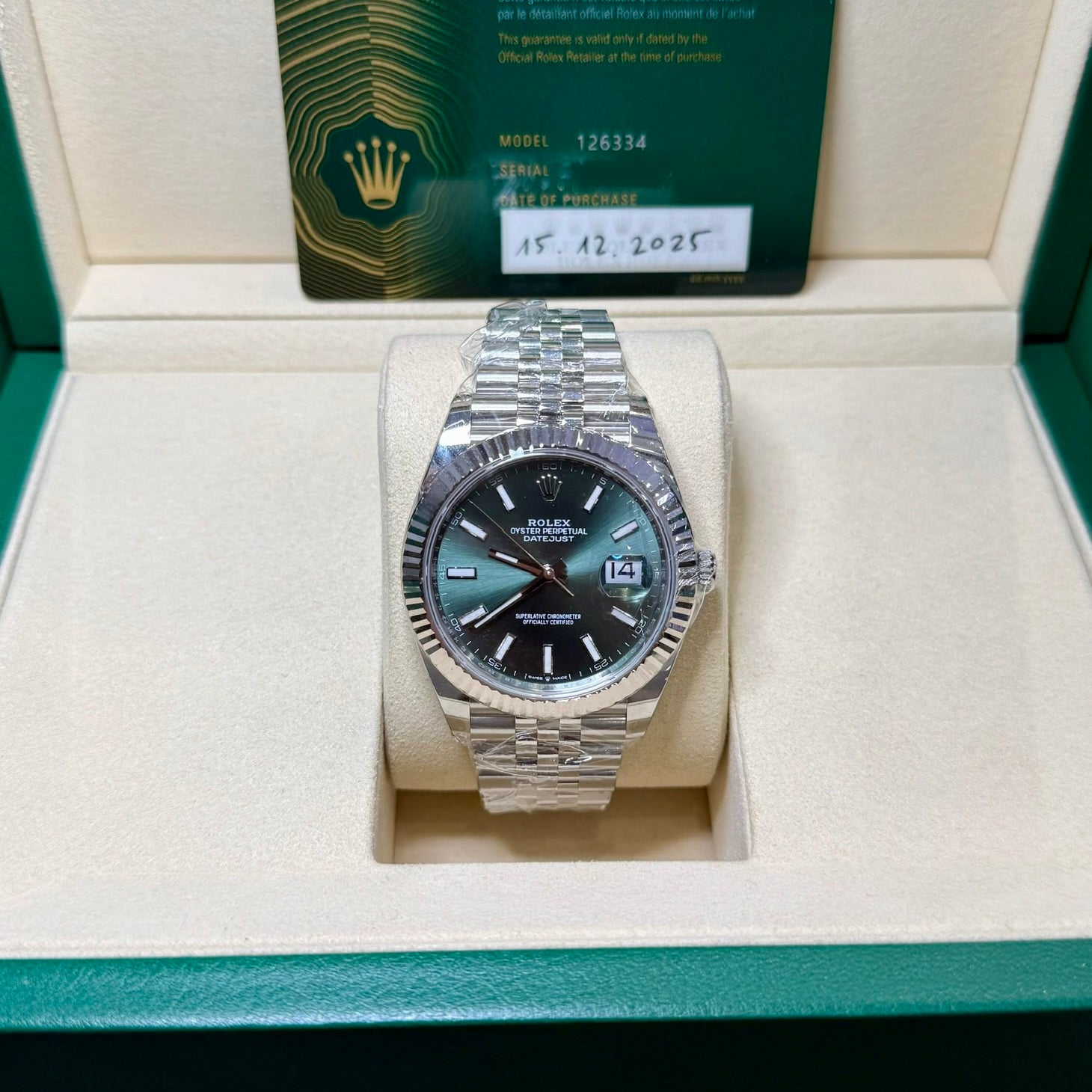 Rolex 126334 Datejust 41 Mint Green Index 2025 - Card