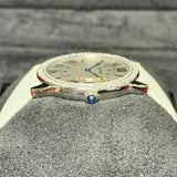 Indulge in the timeless allure of the Cartier Ronde Solo, a distinguished luxury watch that epitomizes elegance and sophistication. This captivating timepiece features a striking 36mm case adorned with a dazzling diamond bezel, encapsulating the essence of premium craftsmanship. The silver dial complements the watch's refined style, making it a versatile accessory for any occasion. Expertly crafted from high-quality stainless steel, this pre-owned masterpiece reflects Cartier's commitment to precision and luxury.