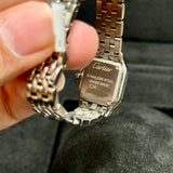 Indulge in the timeless elegance of the Cartier WSPN0019, a luxury timepiece that showcases Cartier's renowned craftsmanship and style. This pre-owned watch, with its iconic white dial, exudes sophistication, making it a perfect accessory for both formal and casual occasions. The watch's sleek design is complemented by its high-quality stainless steel case and bracelet, offering durability and comfort for extended wear. Embodying the essence of luxury watchmaking, this piece is both a statement of prestige and an emblem of precision.