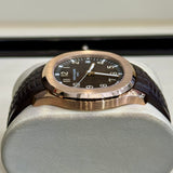 Indulge in the luxurious allure of the Patek Philippe Aquanaut, a masterful creation epitomizing elegance and craftsmanship. This distinctive timepiece, reference number 5167R-001, is designed with a striking 40mm rose gold case that beautifully complements its sophisticated brown dial. The watch features a fixed bezel and a high-quality strap that provides both comfort and style. As a pre-owned piece with papers dated February 2017, this watch remains a testament to Patek Philippe's commitment to precision and enduring value.