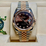 Immerse yourself in the grandeur of the Rolex Datejust 41, a masterful blend of luxury and precision that reflects unparalleled craftsmanship. This prestigious timepiece, reference number 126331, captivates with its distinctive chocolate diamond dial and the signature fluted bezel. Fashioned in a harmonious combination of stainless steel and rose gold, the sophisticated Jubilee bracelet complements both formal and stylish attire with ease. Experience the reliable performance of Rolex's automatic movement, ensuring elegance and precision for the discerning connoisseur.
