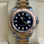 Immerse yourself in the refined luxury of the Rolex Yacht-Master, a masterful timepiece that combines exquisite design with unmatched precision. With its striking intense black dial and rotating bezel, this watch epitomizes elegance and functionality. The wrist-hugging Oyster bracelet, crafted from an impeccable blend of Oystersteel and Everose Gold, adds a touch of opulence, ensuring both durability and timeless style. Powered by a precise Rolex automatic movement, this 40 mm marvel is designed for the discerning watch enthusiast.