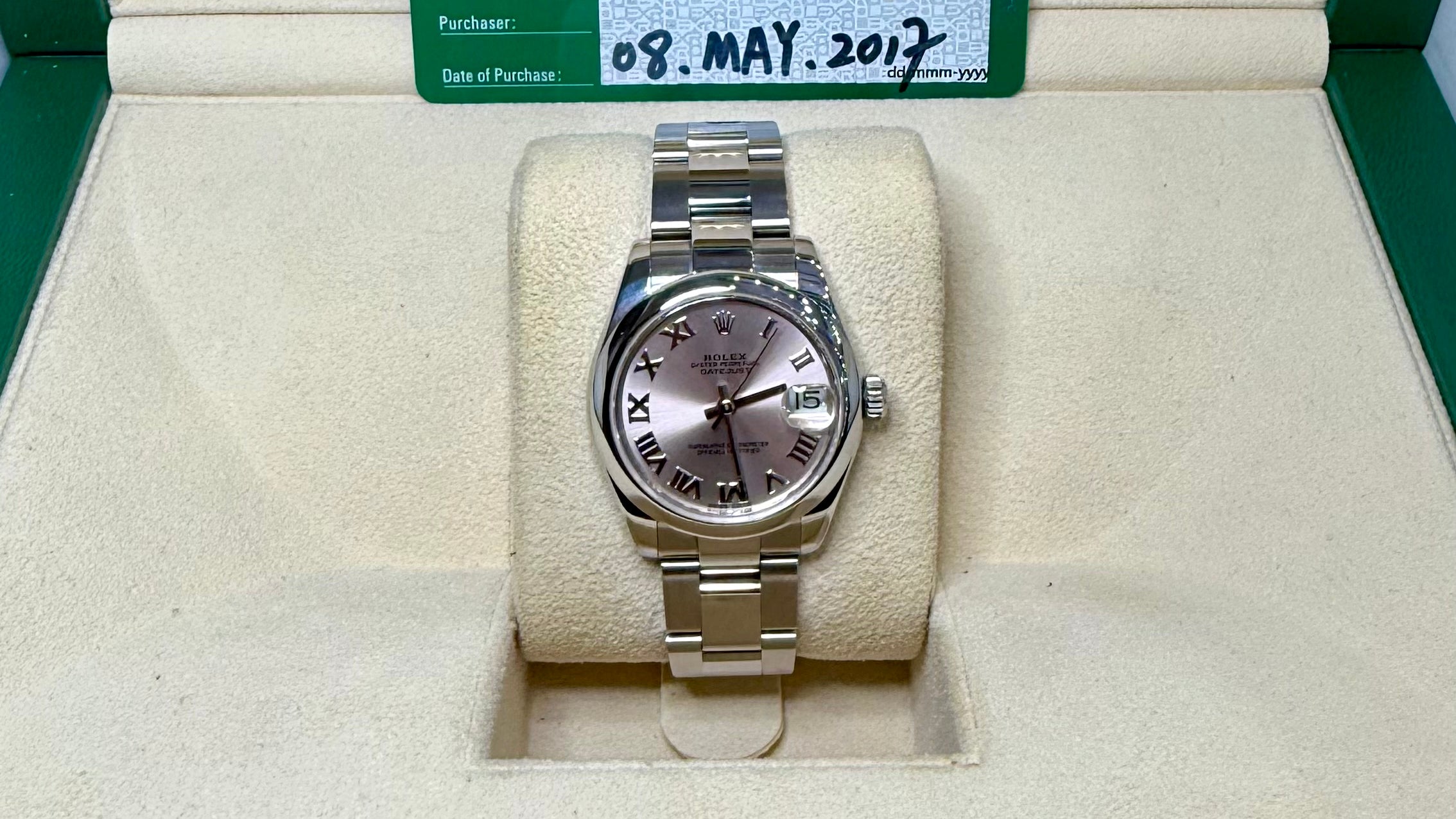 Rolex 178240 Datejust 31 pink roman dial 2017 - Card