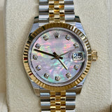 Unveil a masterpiece of horological elegance with the Rolex Datejust 31, a luxury watch that embodies both tradition and innovation. Featuring a stunning Mother-Of-Pearl Diamond dial paired with a distinguished fluted bezel, this timepiece exudes opulence and finesse. Crafted from a harmonious blend of stainless steel and yellow gold, the 31mm case is complemented by a sophisticated Jubilee bracelet, offering unmatched comfort and style. Experience the superior precision and reliability of this exquisite Rolex, perfect for any discerning individual.